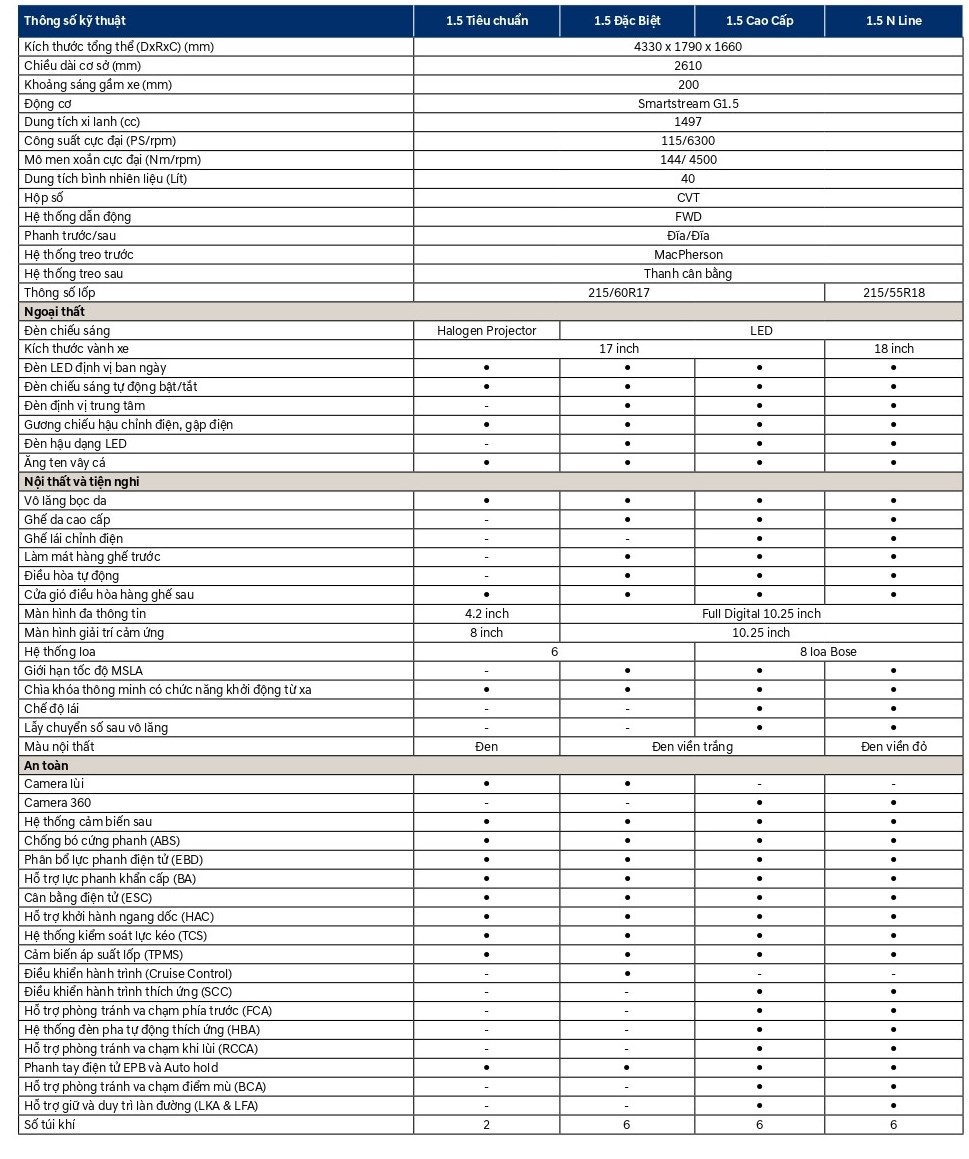 Xe dẫn động cầu trước thông qua hộp số iVT (hộp số vô cấp biến thiên thông minh) do Hyundai phát triển.