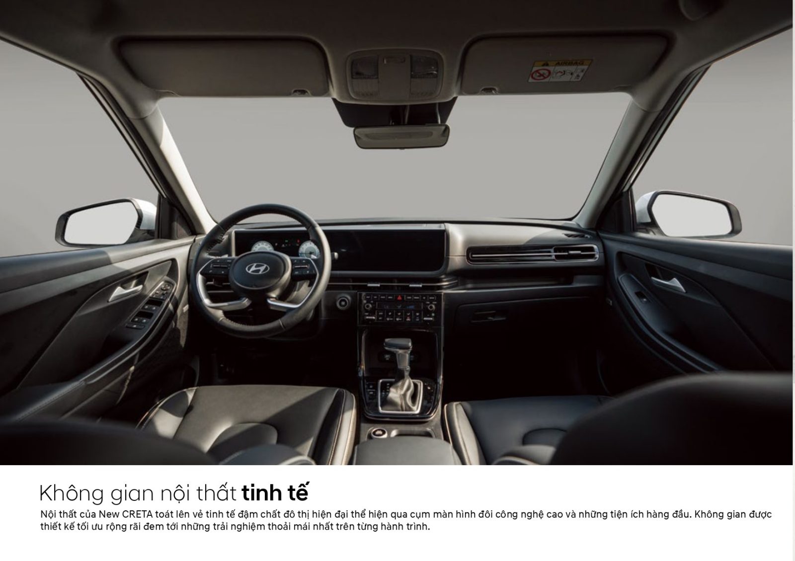 Hyundai Creta 2025 được trang bị ghế ngồi bọc da cao cấp, các chi tiết da cũng xuất hiện kết hợp cùng chất liệu nhựa cao cấp trong cabin xe giúp tăng thêm phần lịch lãm sang trọng.