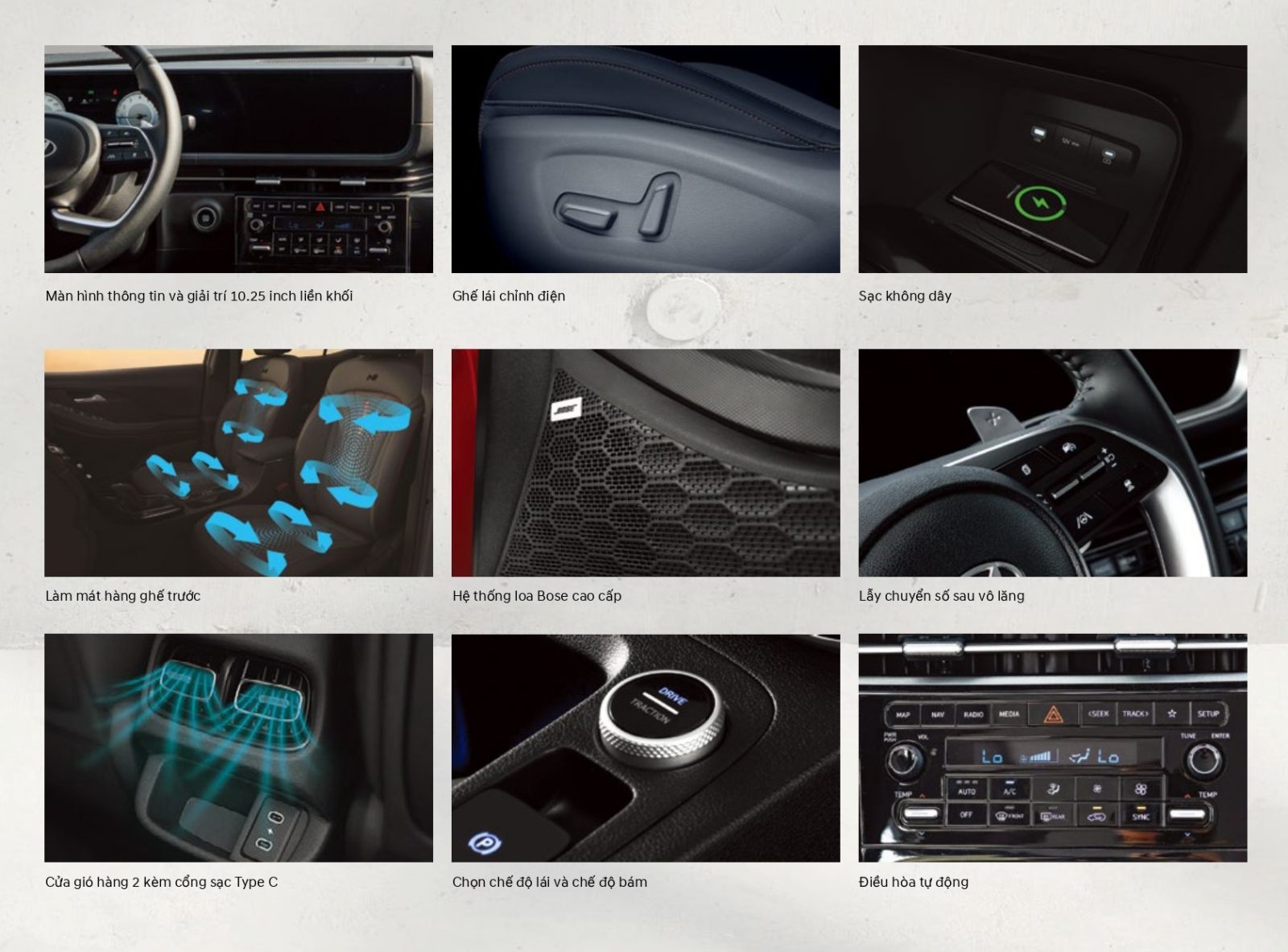 Các trang bị tiện ích khác trên xe bao gồm: làm mát hàng ghế trước, điều khiển hành trình thông minh, giới hạn tốc độ MSLA, phanh tay điện tử EPB và Autohold, cảm biến áp suất lốp TPMS…