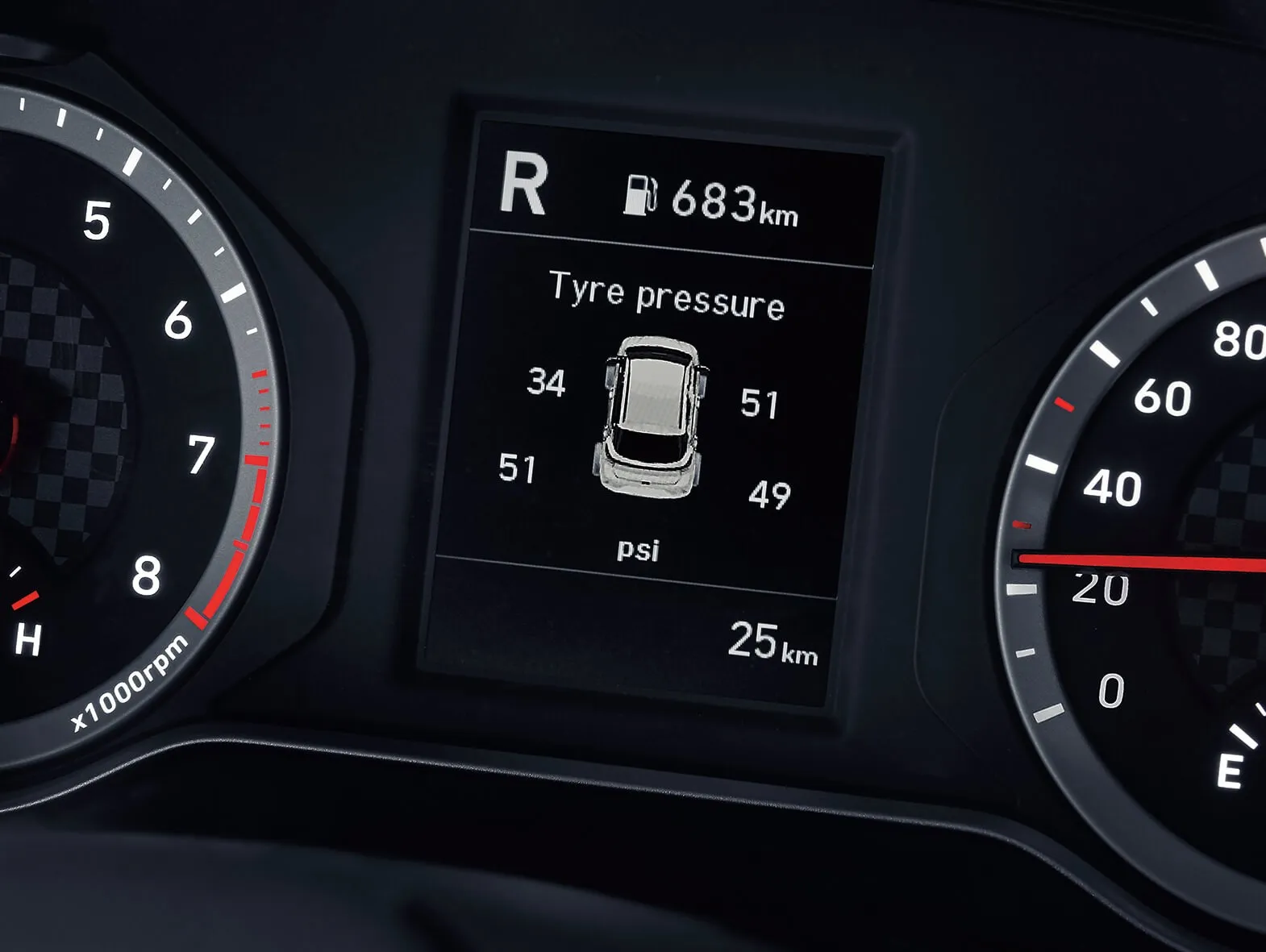 Có thể thấy i10 là mẫu xe hạng A đi tiên phong trong việc trang bị cảm biến áp suất lốp, giúp tài xế nhanh chóng nhận biết tình trạng thiếu áp suất trên bánh xe, từ đó có phương án xử lý kịp thời.